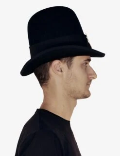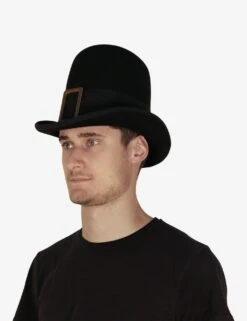 Genuine Top Hat, a replica a 19th-century style 100% made of Wool Felt with a fluted edge decorated with a fluted ribbon and a vertical buckle