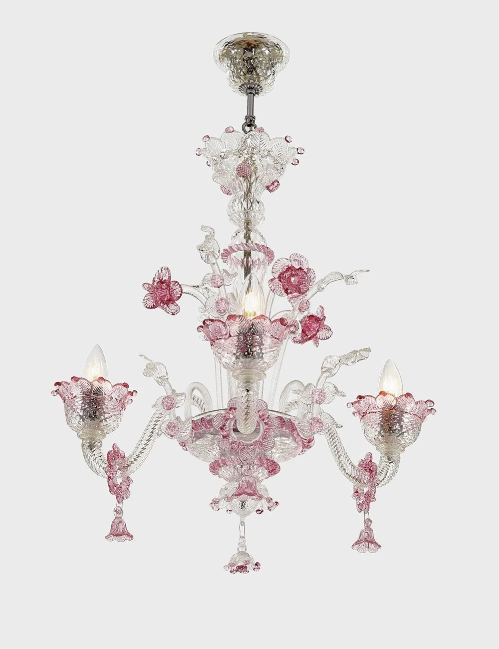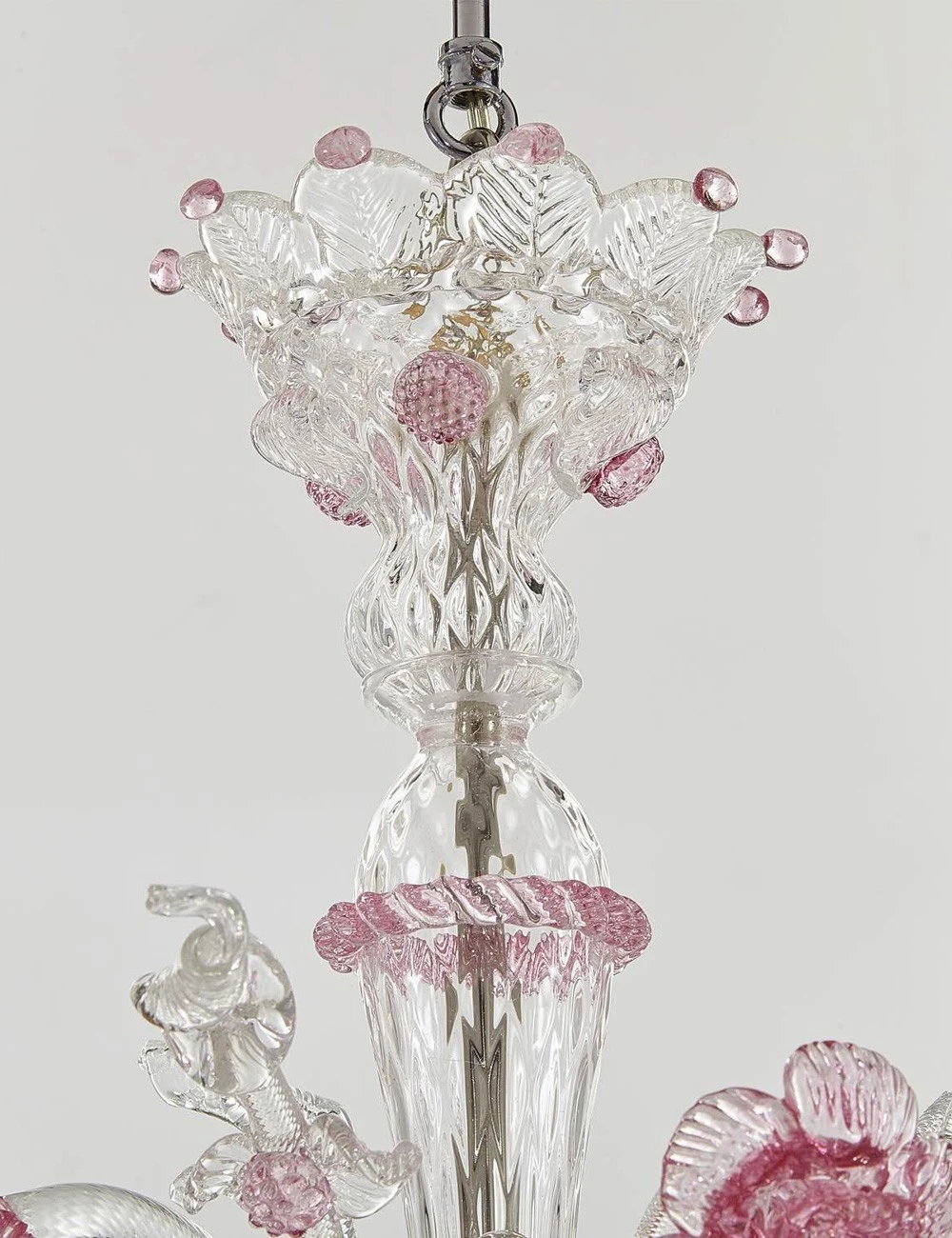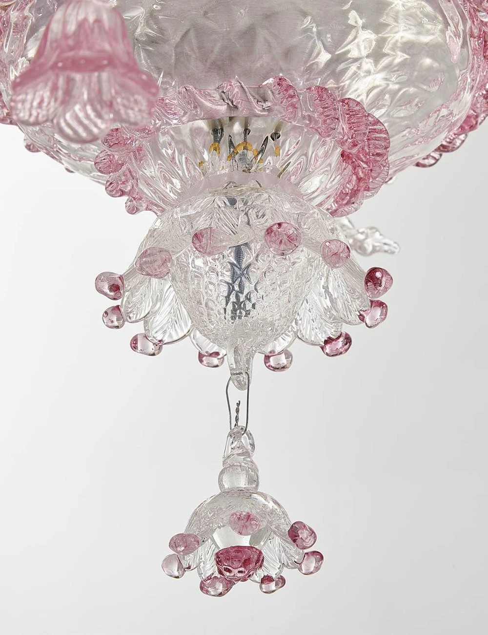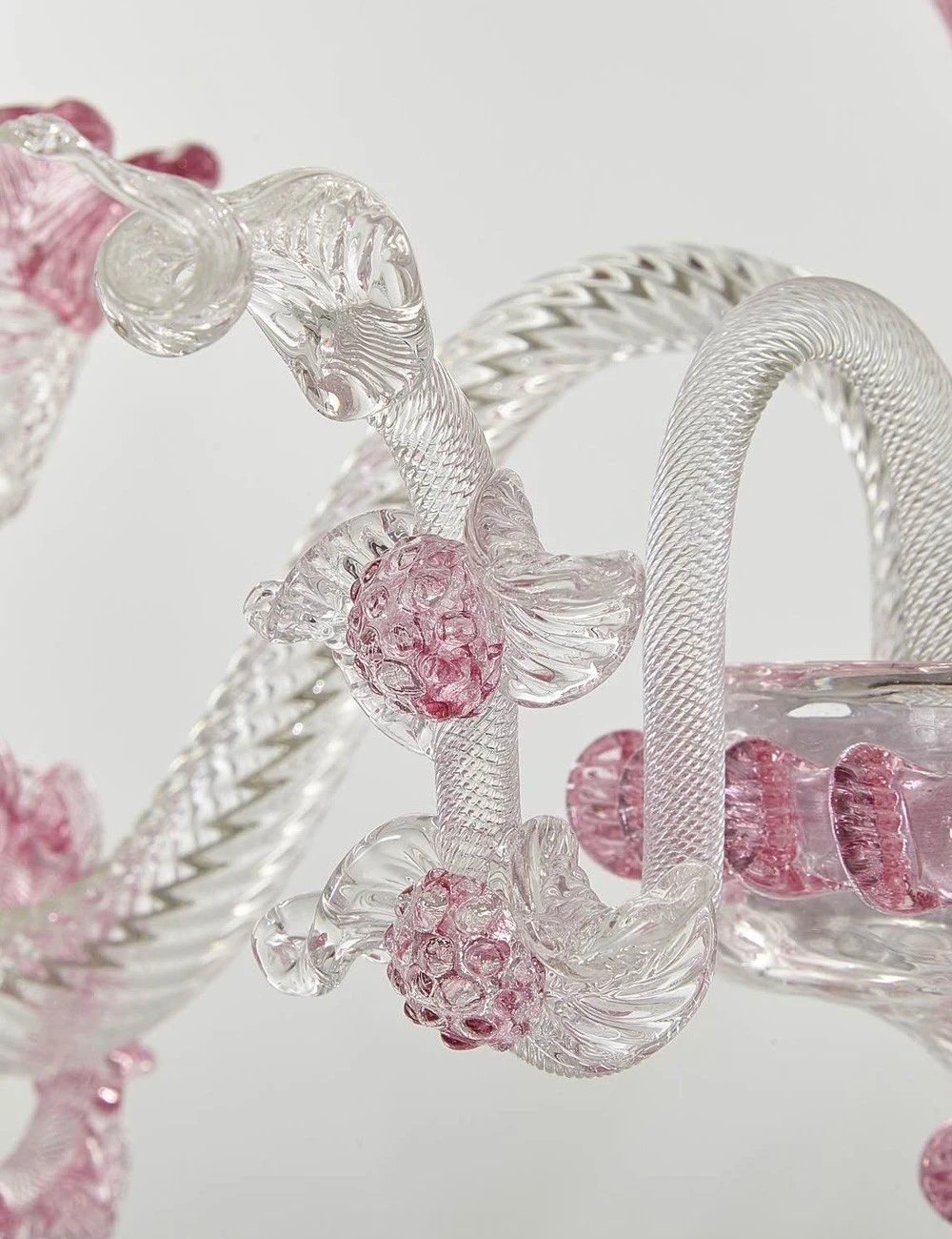 Embellished with graceful details forged and decorated by hand by master glassmakers in Murano.