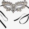 Aulente authentic venetian mask with the finest metal filigree, decorated with high quality certified crystals and completed with thin satin ribbons ready to wear. Manifactured in Venice by the famous venetian masters.