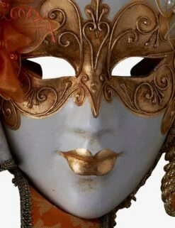 Belle Dame with Roses and Feathers authentic venetian mask in papier mache. Handcrafted according to the original Venice carnival tradition. Manifactured in Venice by the famous venetian masters. Each item is provided with certificate of authenticity.