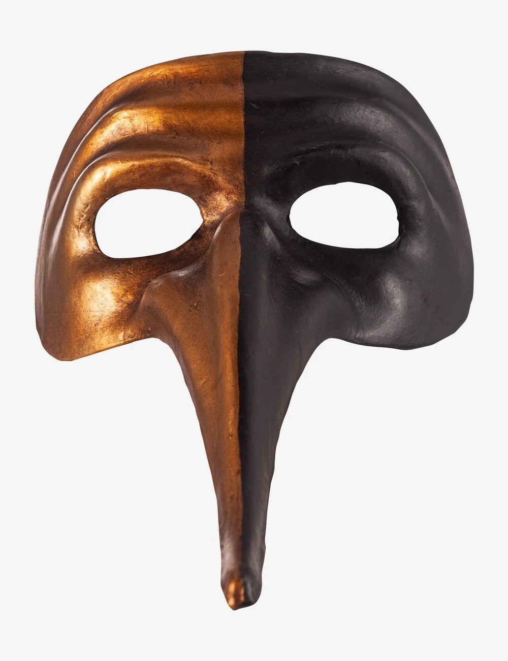 Black and gold Zanni authentic venetian mask in papier mache. Handcrafted according to the original Venice carnival tradition. Manifactured in Venice by the famous venetian masters. Each item is provided with certificate of authenticity.