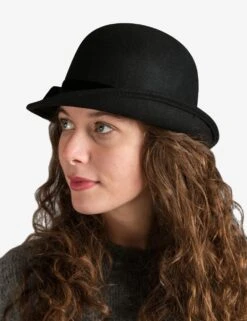 Genuine Cloche Hat of Wool Felt decorated with a side bow.