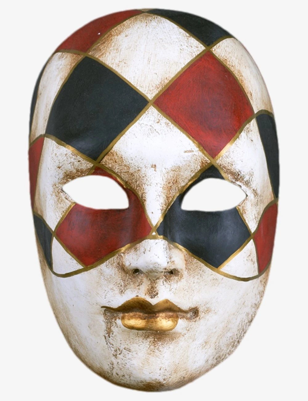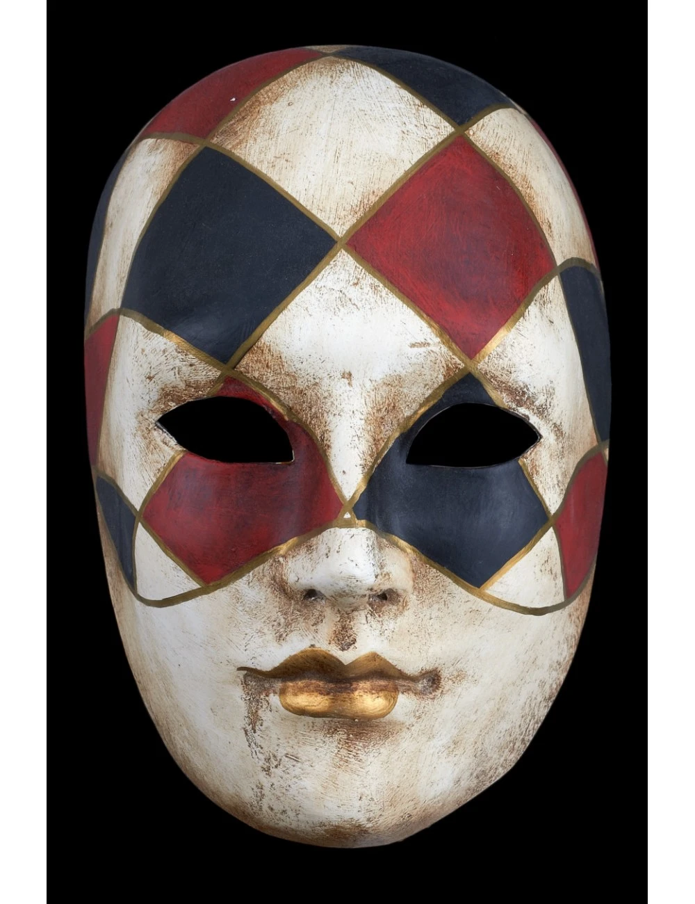 Black & Red Checked Face Authentic venetian mask in papier mache. Handcrafted according to the original Venice carnival tradition. Manifactured in Venice by the famous venetian masters. Each item is provided with certificate of authenticity.