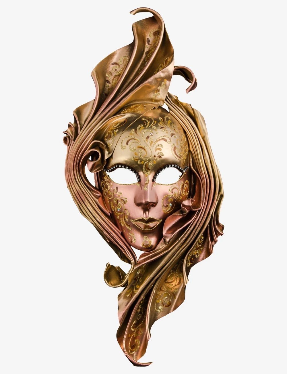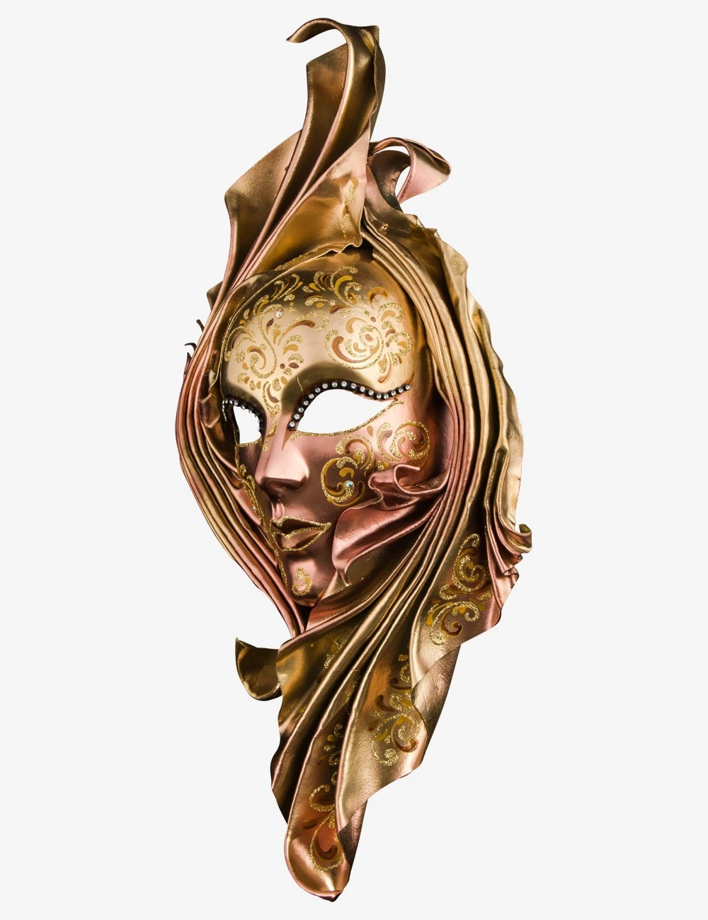 Bronze Siderea authentic venetian mask in papier mache with leather decoration. Handcrafted according to the original Venice carnival tradition. Manufactured in Venice by the famous venetian masters. Each item is provided with certificate of authenticity.