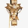 Brown Zanni Artisan leather mask with laces to be worn, handcrafted in our Workshops in Italy. Made and decorated by hand, it maintains an elasticity that guarantees excellent long-lasting wearability suitable for performances such as theatre, acting, dance, etc.