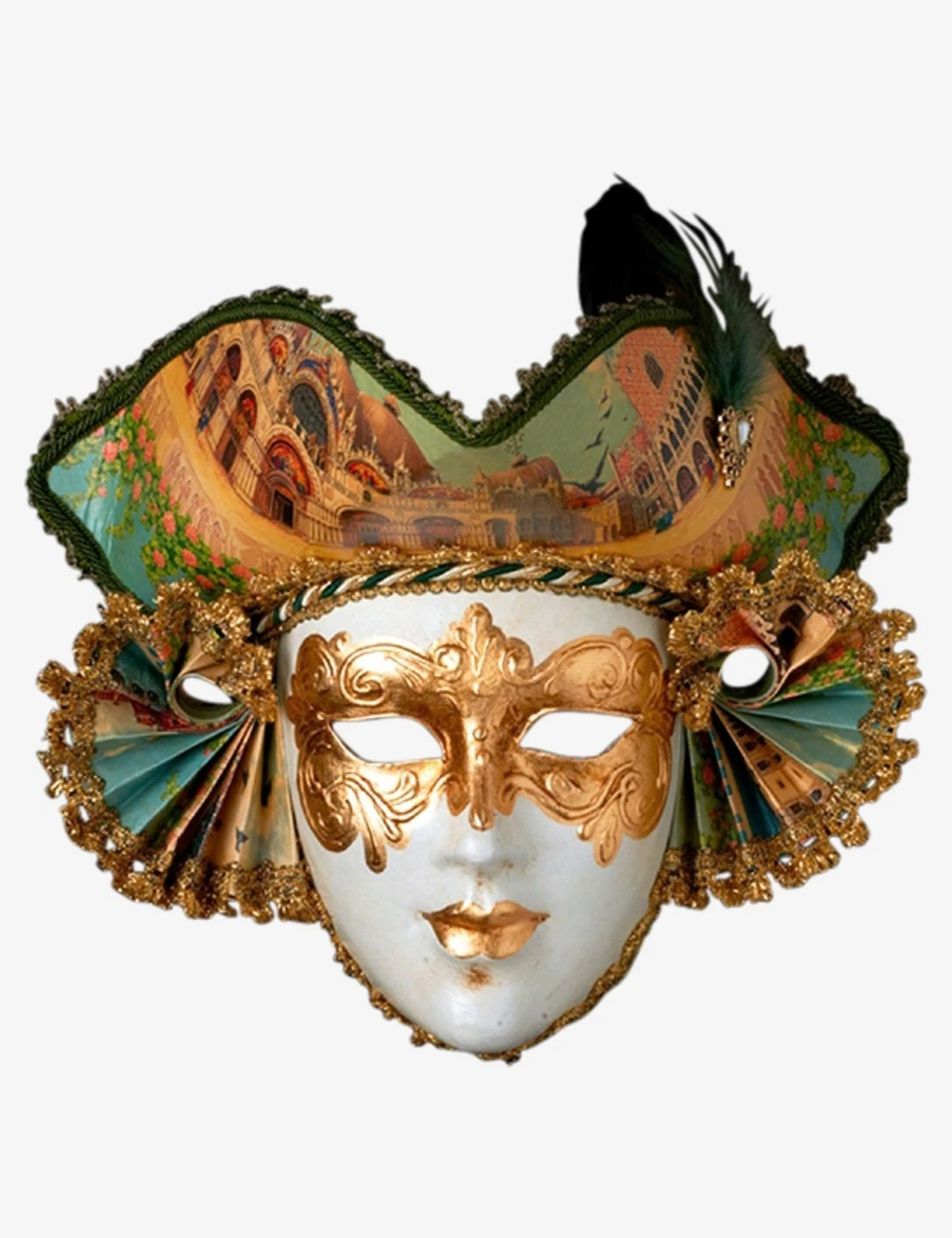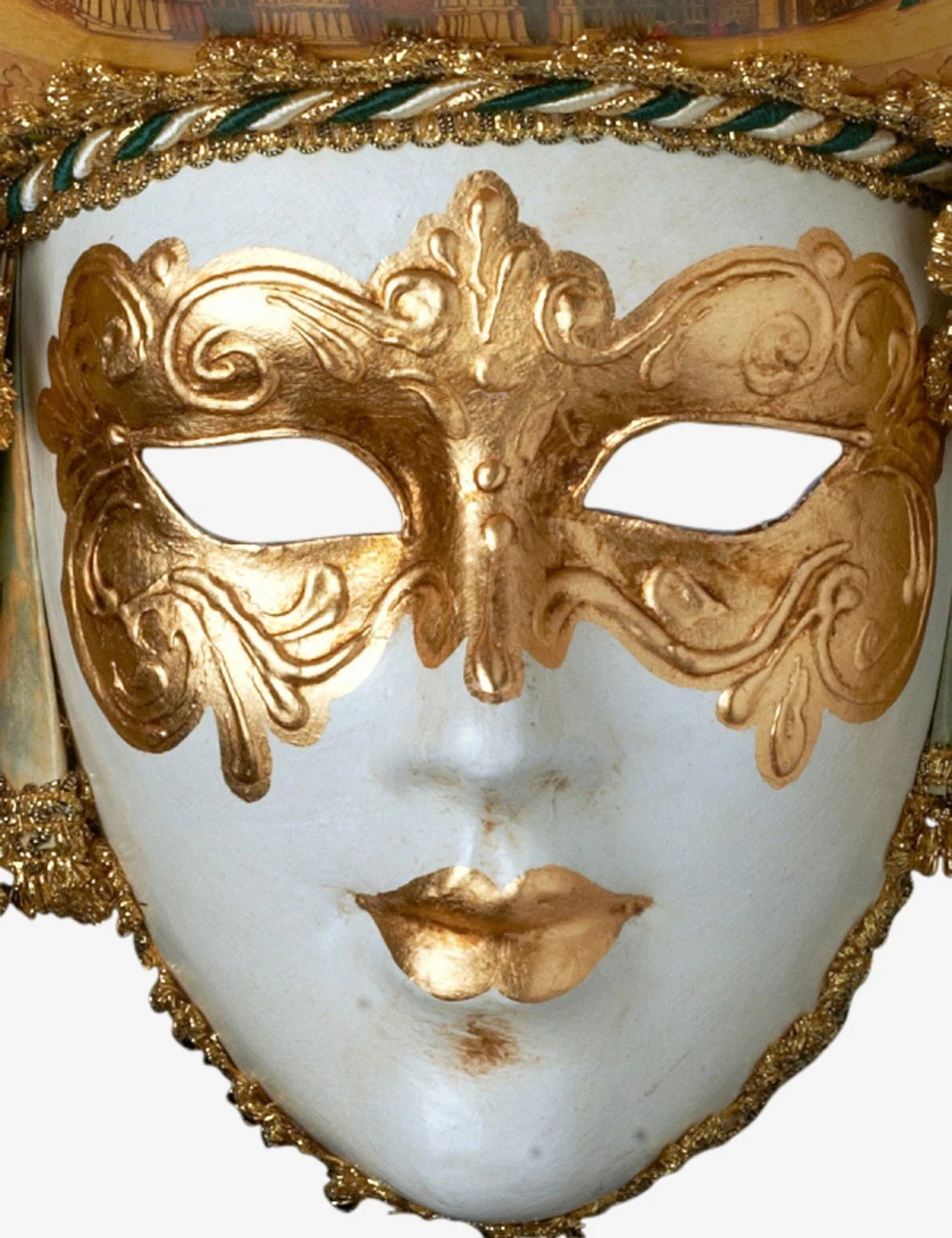 Casanova face Venice Card authentic venetian mask in papier mache. Handcrafted according to the original Venice carnival tradition. Manufactured in Venice by the famous venetian masters. Each item is provided with certificate of authenticity.