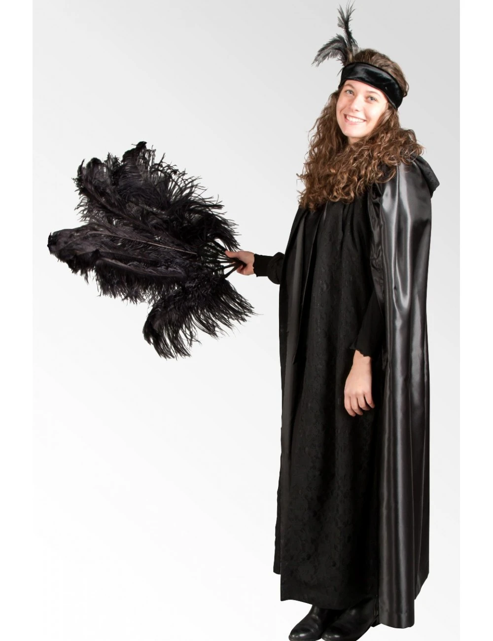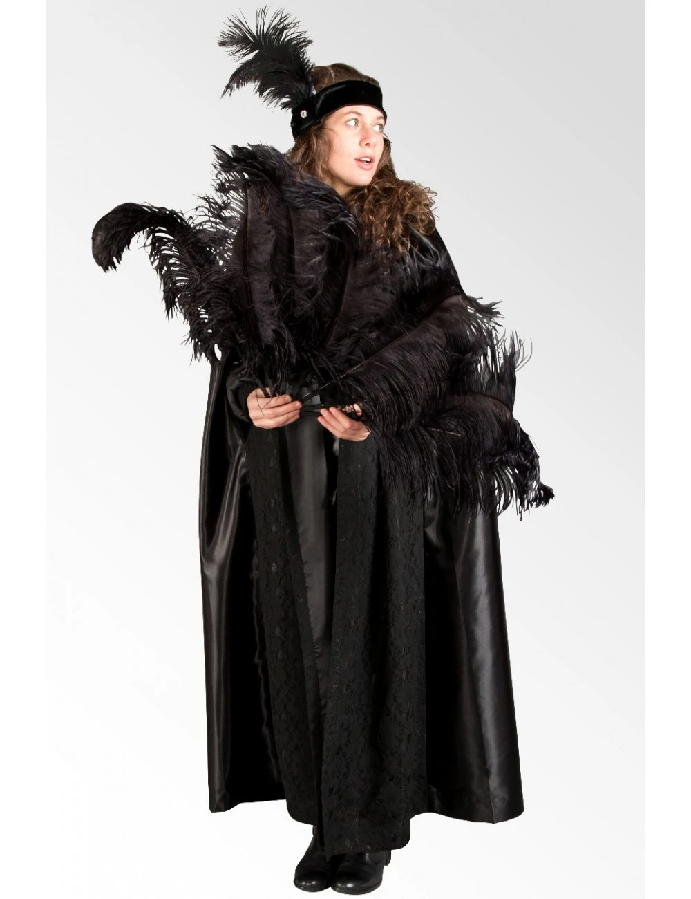 Charleston Dress made up of a Lace and Varese Satin Cape, Velvet headband with Feather and Charleston Fan with Black Ostrich Feather