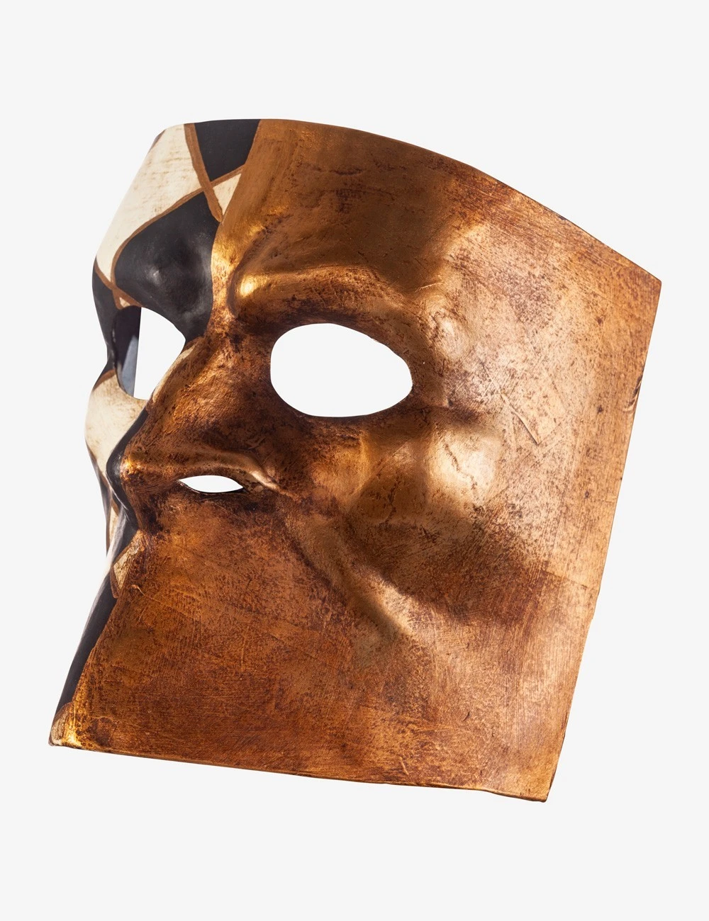 Checked Black and Gold Bauta authentic venetian mask in papier mache. Handcrafted according to the original Venice carnival tradition. Manifactured in Venice by the famous venetian masters. Each item is provided with certificate of authenticity.