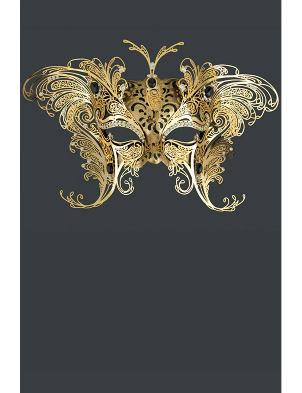 Chrysalis authentic venetian mask in papier mache with metal decoration. Handcrafted according to the original Venice carnival tradition. Manufactured in Venice by the famous venetian masters. Each item is provided with certificate of authenticity.