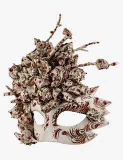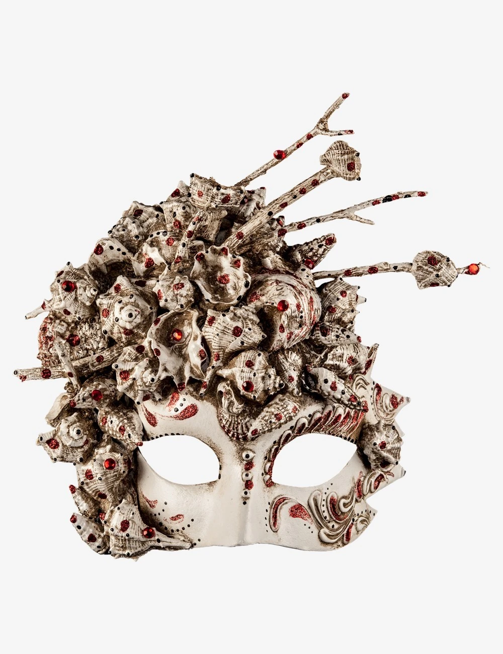 Clodia venetian mask in papier mache decorated with real shells of the Venetian beaches. Handcrafted according to the original Venice carnival tradition. Manifactured in Venice by the famous venetian masters. Each item is provided with certificate of authenticity.