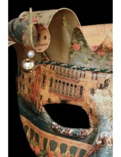 Columbina with Venice Drawing: authentic venetian mask in papier mache. Handcrafted according to the original Venice carnival tradition. Manufactured in Venice by the famous venetian masters. Each item is provided with certificate of authenticity.