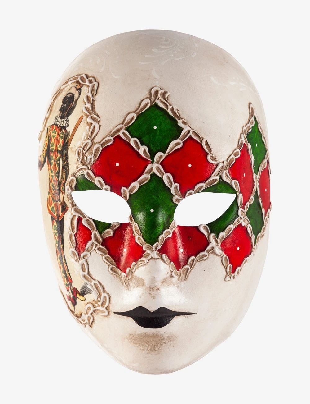 ComedianĀ authentic venetian mask in papier mache handcrafted according to the original Venice carnival tradition. Manufactured in Venice by the famous venetian masters. Each item is provided with certificate of authenticity.