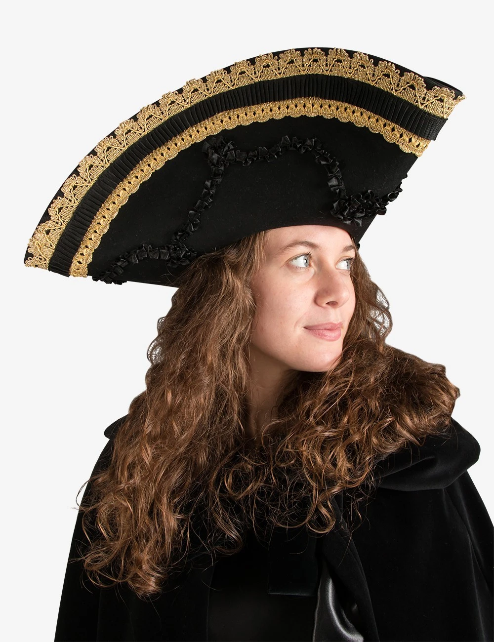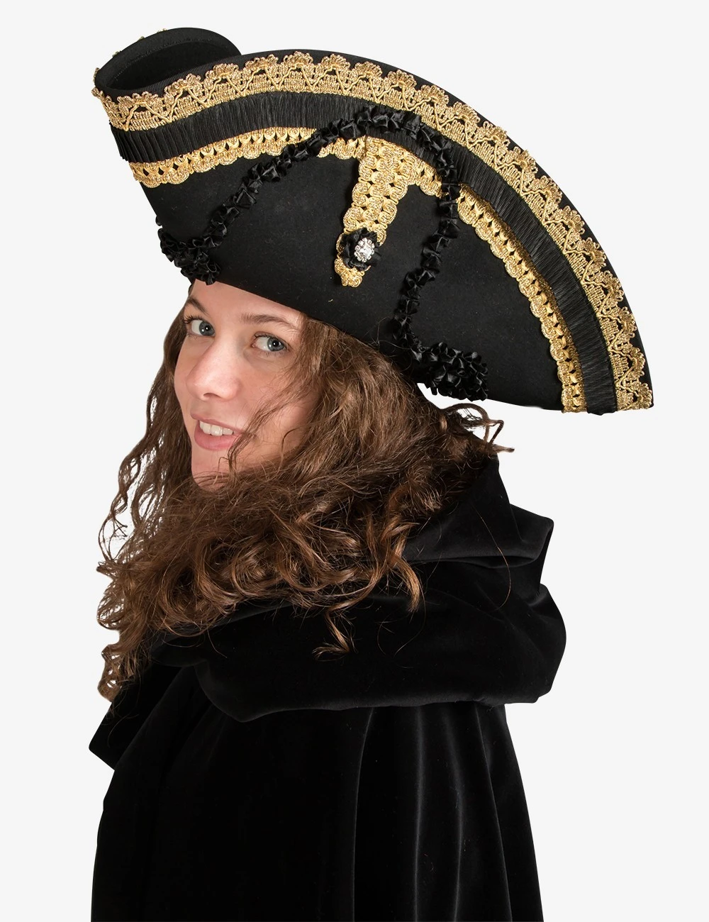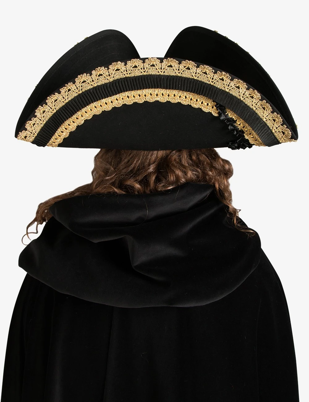 Genuine Contarini Tricorne Hat 100% made of Wool Felt decorated with three trimmings, two golden and one black