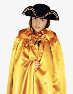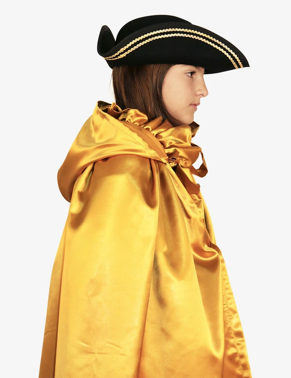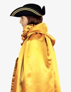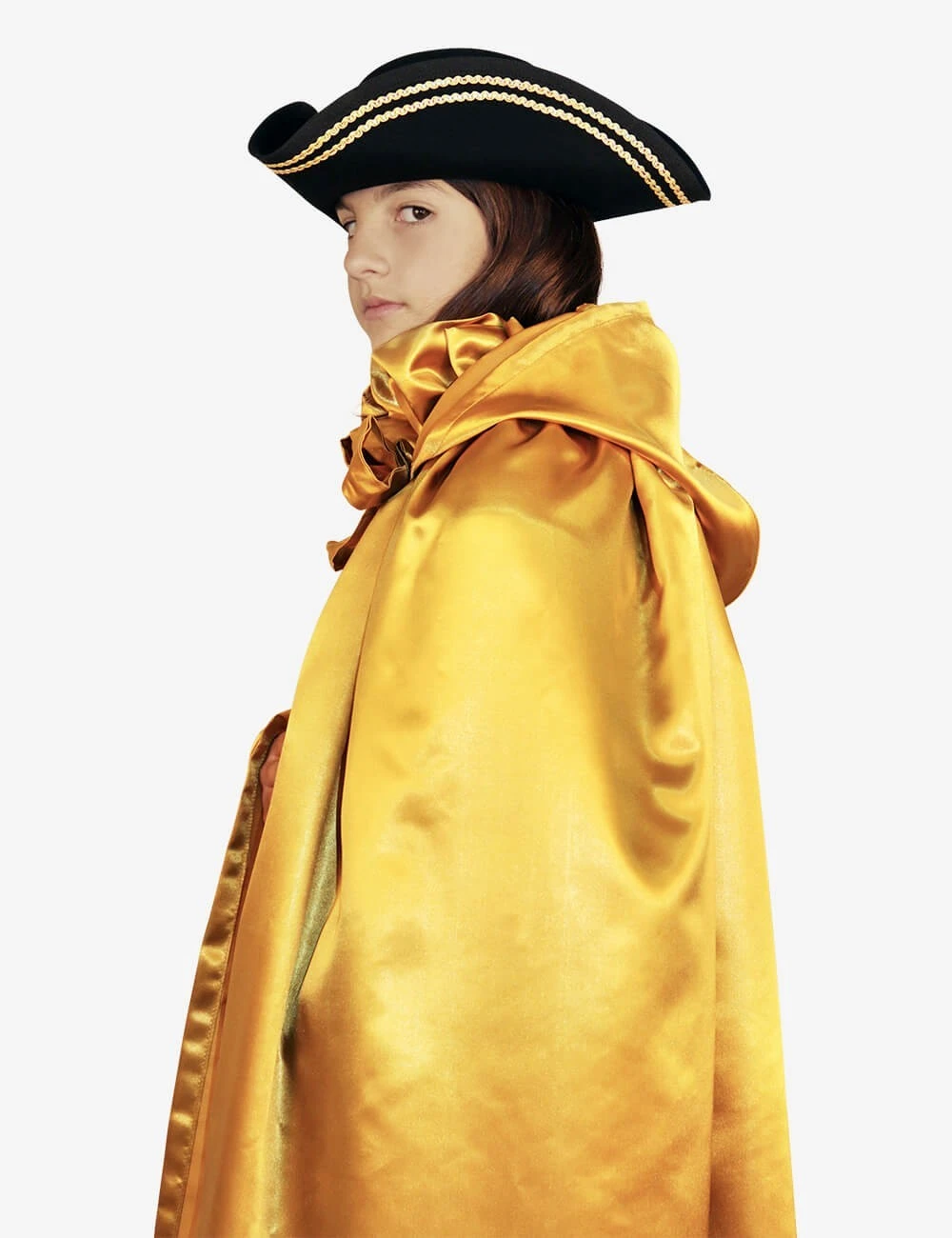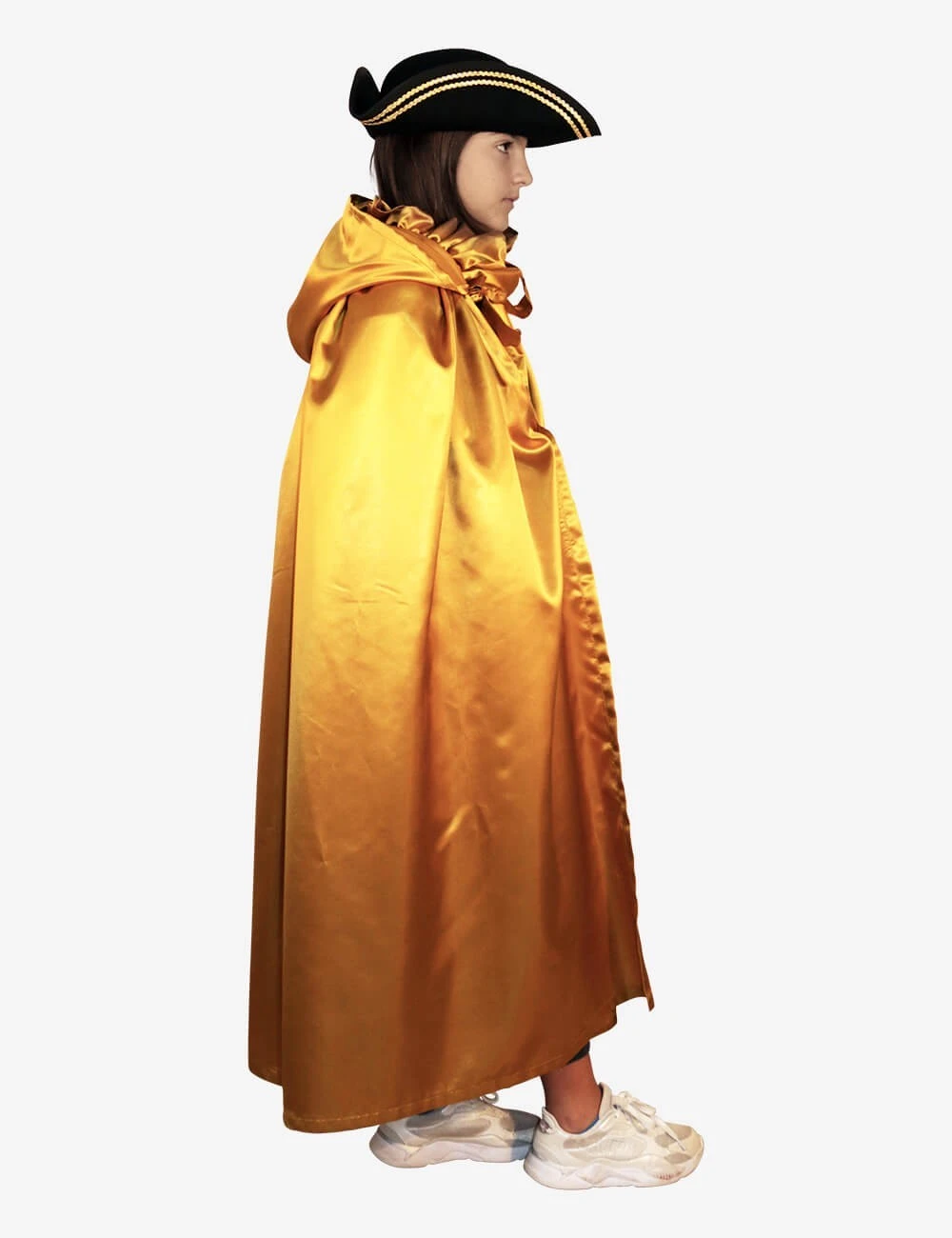 Junior cape in yellow Varese satin with gathered collar and hood.