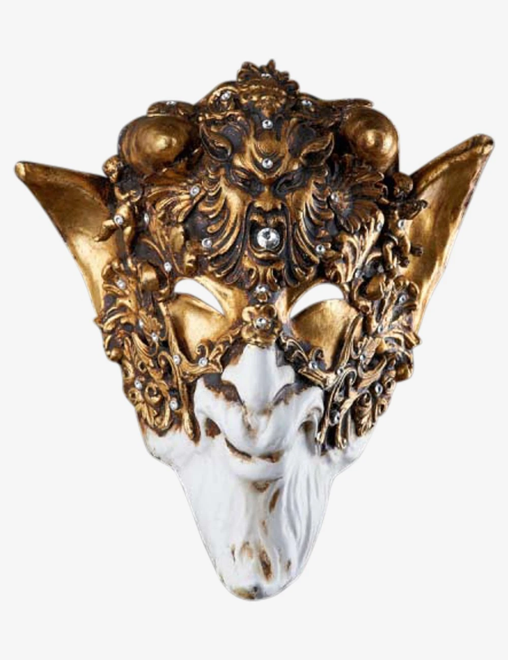 Diamond Satyr authenticĀ venetian mask in paper mache with a unique baroque style. Ā This item is strictly handcrafted in Venice, Italy by the famous artists of the city according to the carnival tradition. Ā Each item comes with certificate of authenticity.