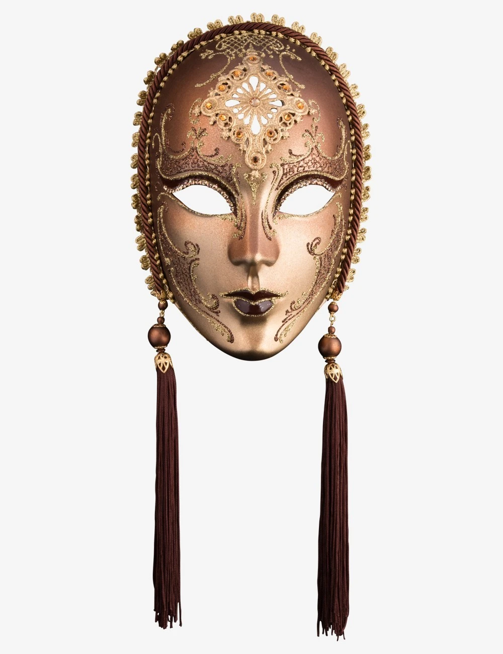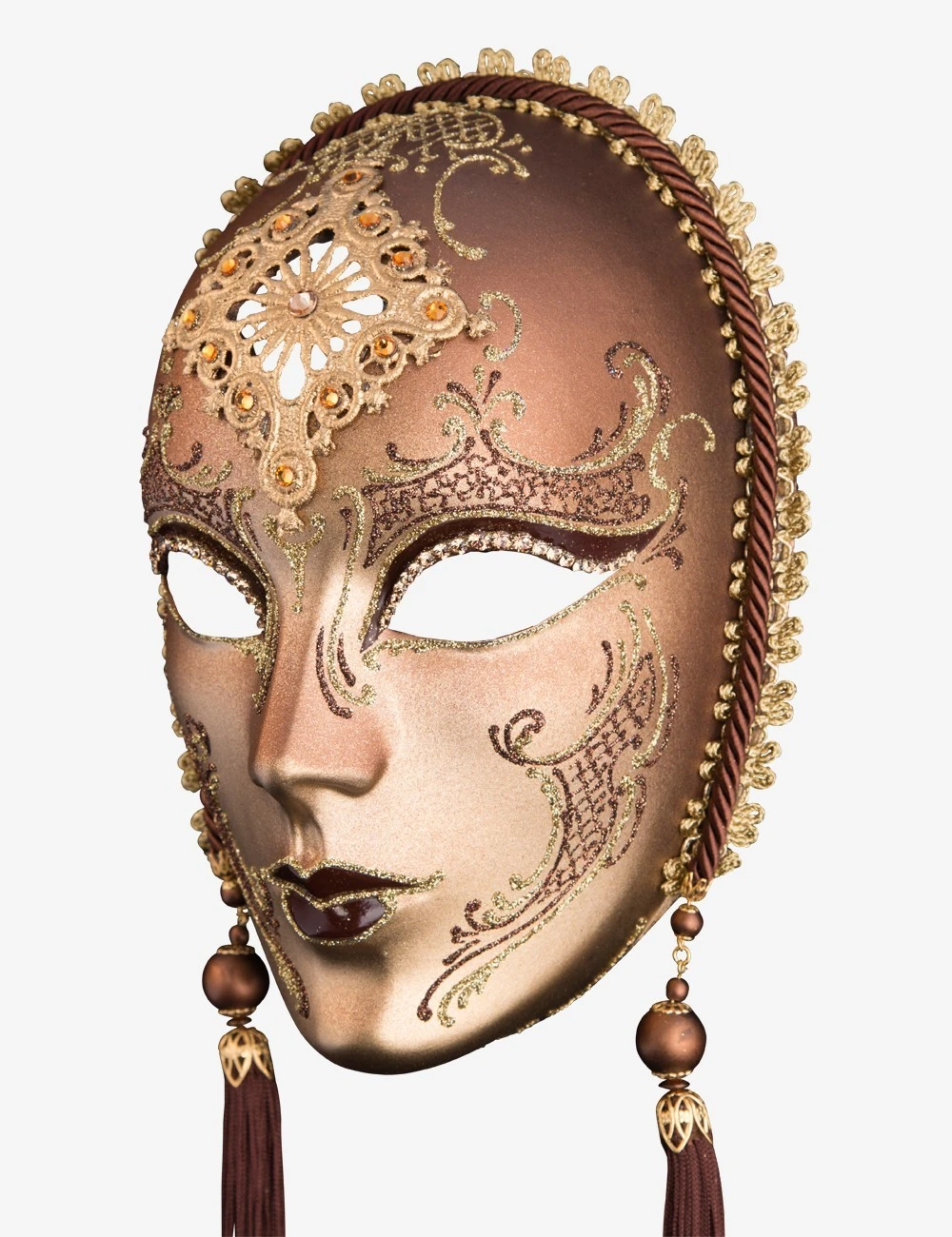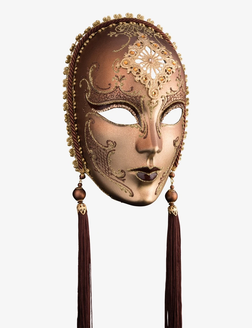 Domizia authentic venetian mask in papier mache with metal decoration. Handcrafted according to the original Venice carnival tradition. Manufactured in Venice by the famous venetian masters. Each item is provided with certificate of authenticity.