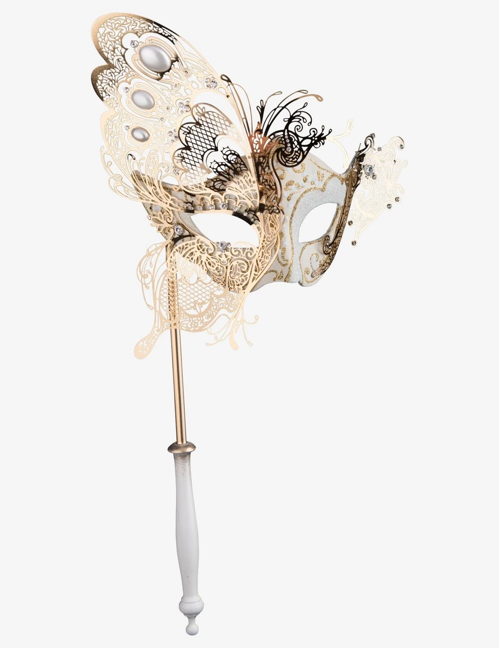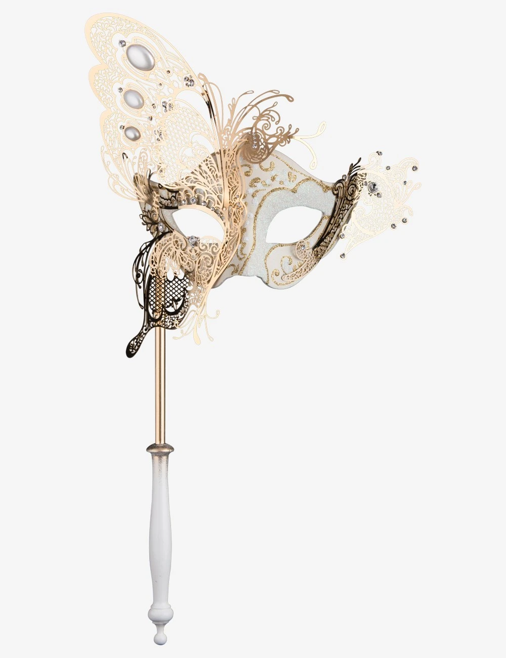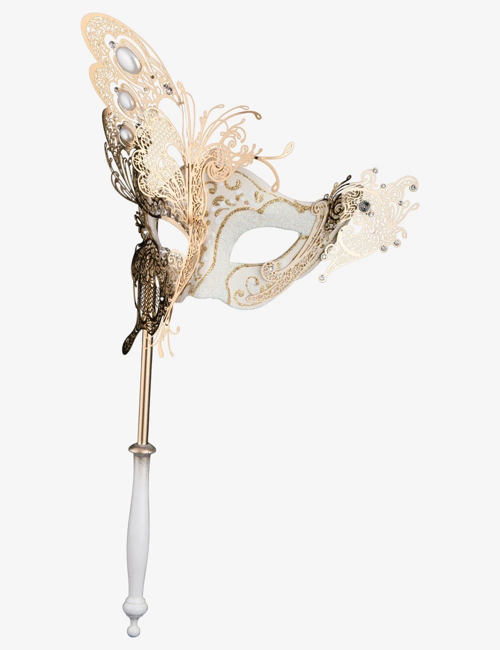 Filomena authentic venetian mask in papier mache with metal decoration. Handcrafted according to the original Venice carnival tradition. Manufactured in Venice by the famous venetian masters. Each item is provided with certificate of authenticity.
