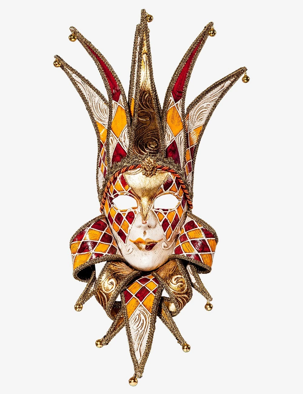 Meraviglia Jolly authentic venetian mask in papier mache. Handcrafted according to the original Venice carnival tradition. Manifactured in Venice by the famous venetian masters. Each item is provided with certificate of authenticity.