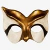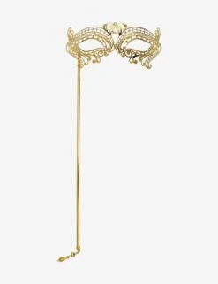 Gold Danae with Strass and Stick authentic venetian mask made of metal. Handcrafted according to the original Venice carnival tradition. Manufactured in Venice by the famous venetian masters. Each item is provided with certificate of authenticity.