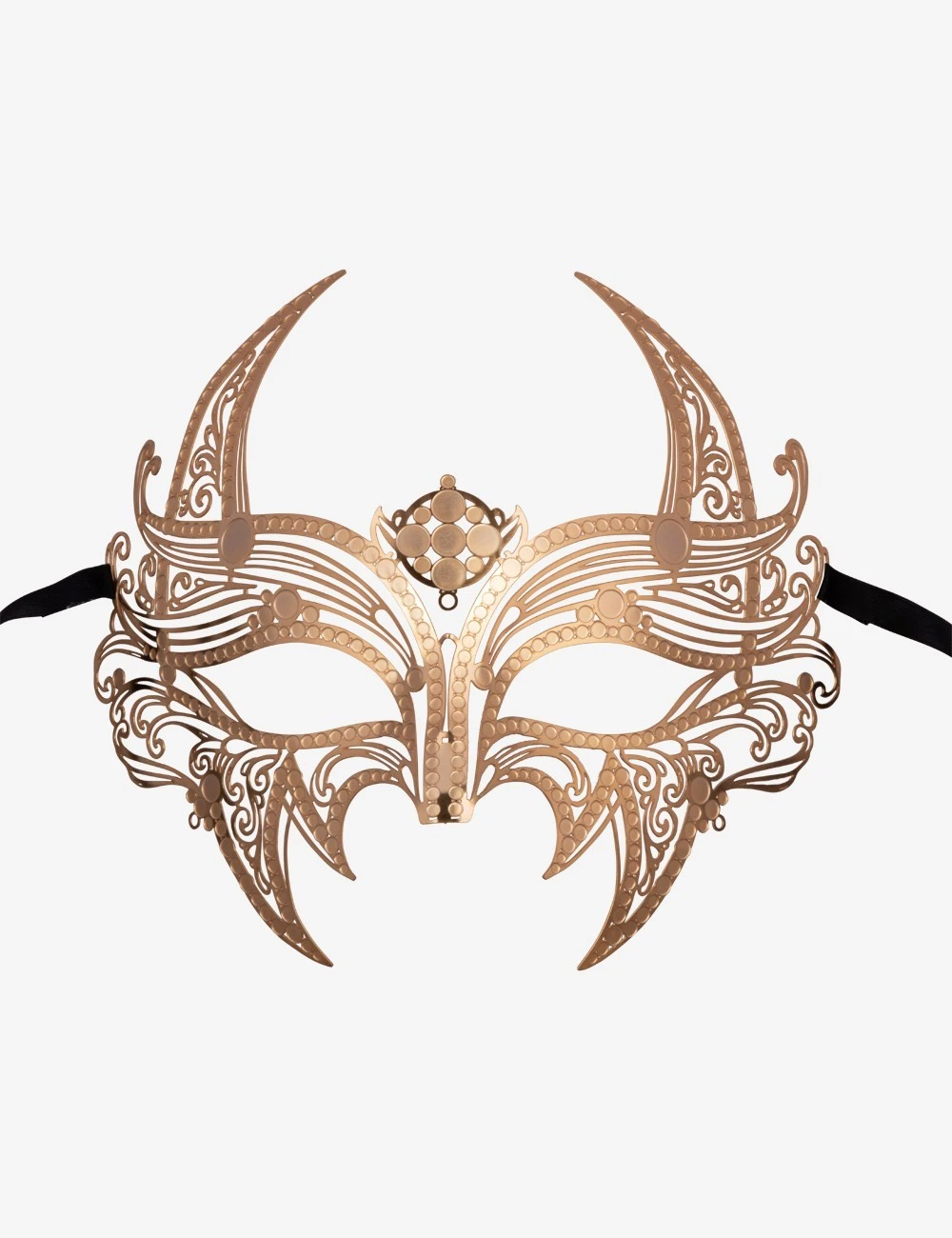 Gold Nika authentic venetian mask with the finest metal filigree and completed with thin satin ribbons ready to wear. Manifactured in Venice by the famous venetian masters.