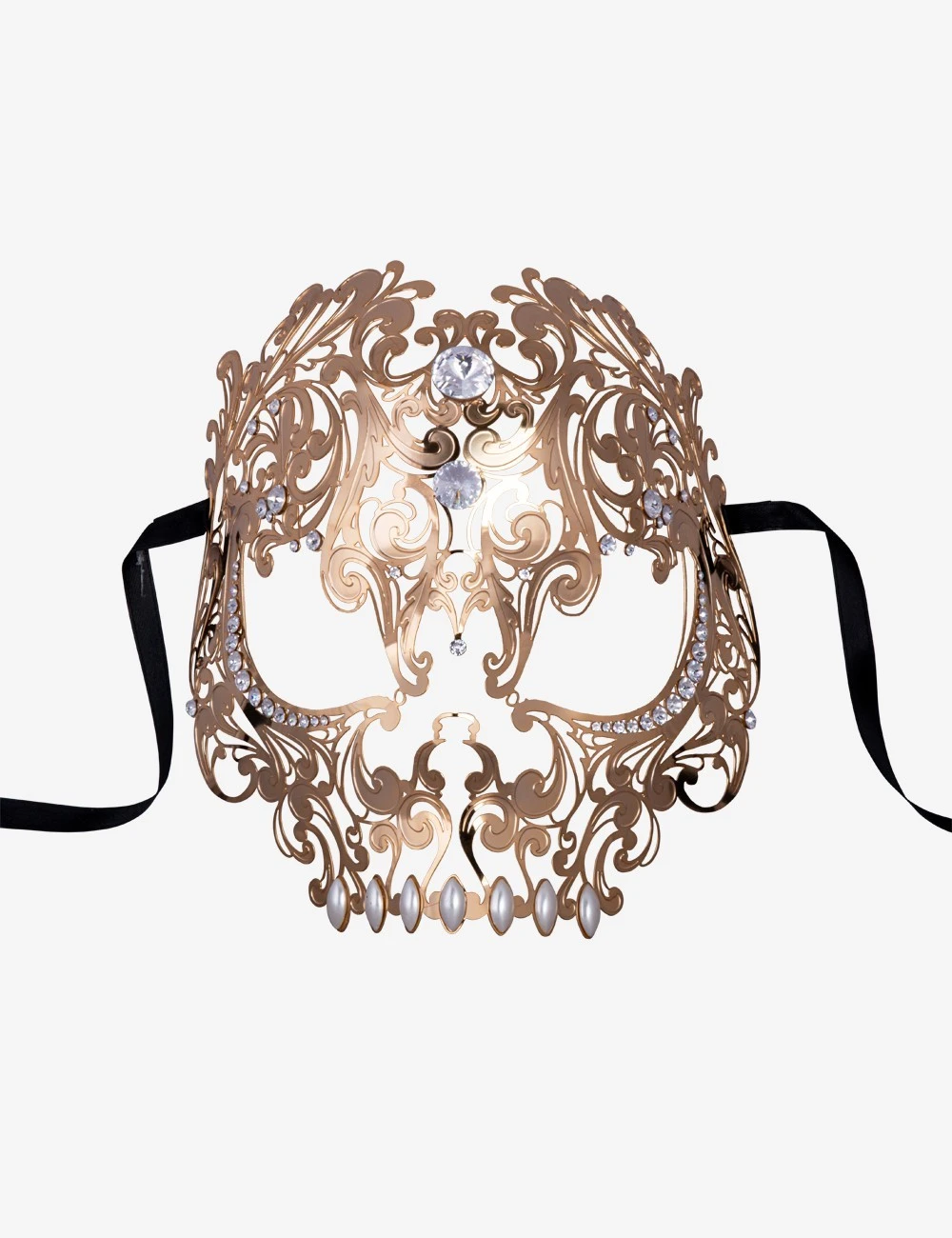 Gold Thanatos with StrassĀ authentic venetian mask with the finest metal filigree, decorated with high quality certified crystals and completed with thin satin ribbons ready to wear. Manifactured in Venice by the famous venetian masters.