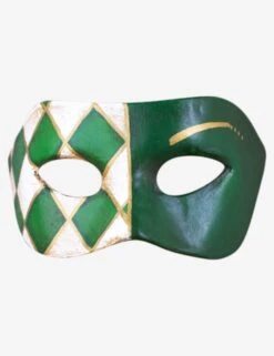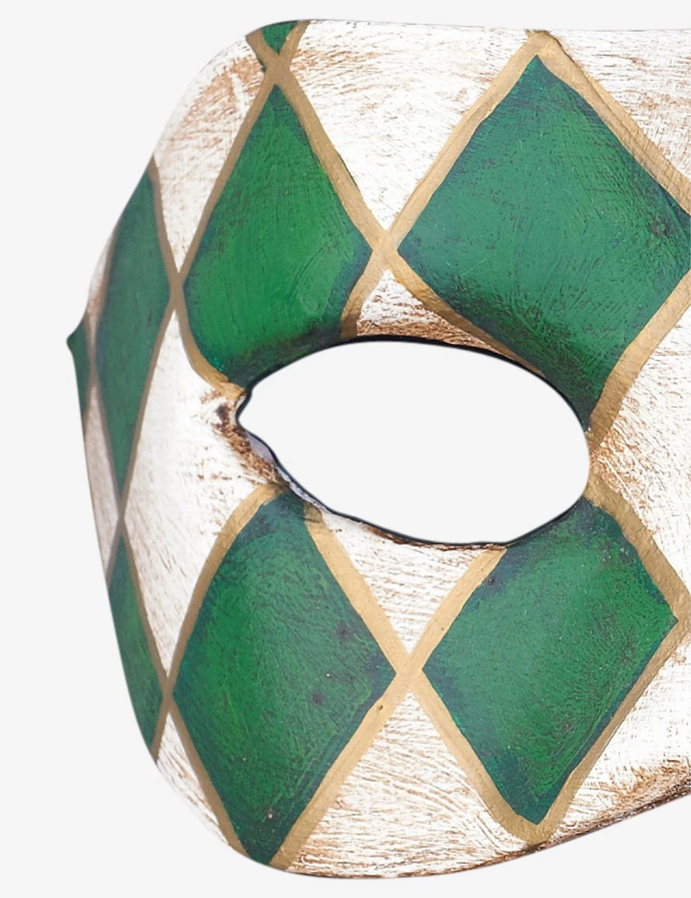 Green Checked Eye Mask Authentic venetian mask in papier mache. Handcrafted according to the original Venice carnival tradition. Manifactured in Venice by the famous venetian masters. Each item is provided with certificate of authenticity.