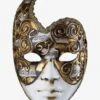 Green Face with Gold authentic venetian mask in papier mache. Handcrafted according to the original Venice carnival tradition. Manifactured in Venice by the famous venetian masters. Each item is provided with certificate of authenticity.