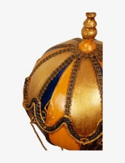 The papier-mâché base is decorated with gold leaf, trimmings, metal filigree and gold-plated chains.