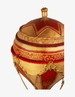 The papier-mâché base is decorated with gold leaf, trimmings, metal filigree and gold-plated chains.