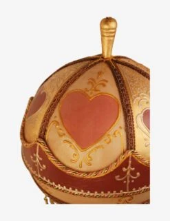 The papier-mâché base is decorated with gold leaf, trimmings, metal filigree and gold-plated chains.
