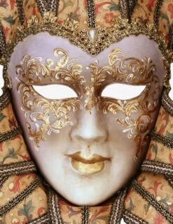Jolly D’AlcamoĀ authentic venetian mask in papier mache. Handcrafted according to the original Venice carnival tradition. Manifactured in Venice by the famous venetian masters. Each item is provided with certificate of authenticity.