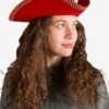 Genuine wool felt tricorn embellished with red and yellow coloured trimmings and ostrich feathers, wing 14 cm