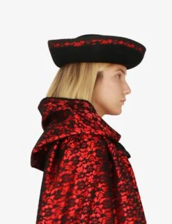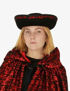 Authentic tricorn sachet hat in black wool felt with coloured border.