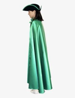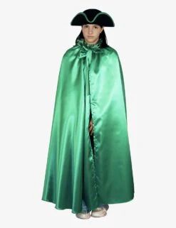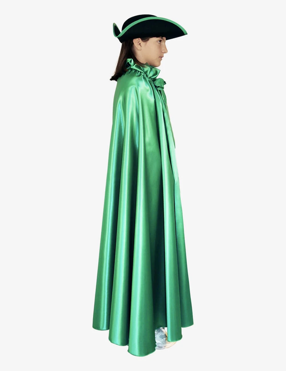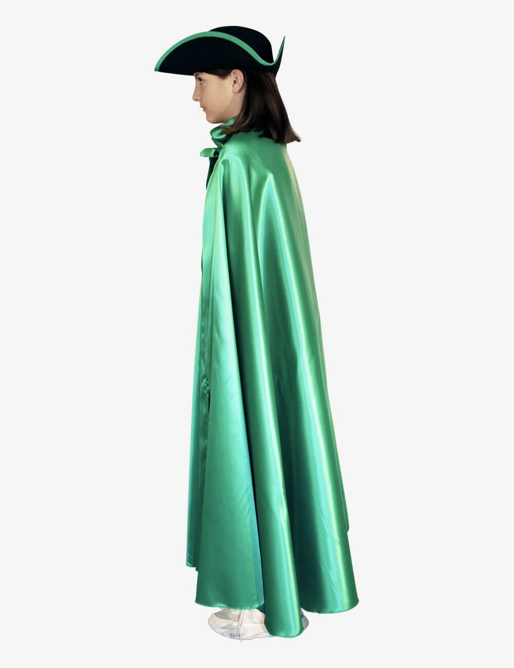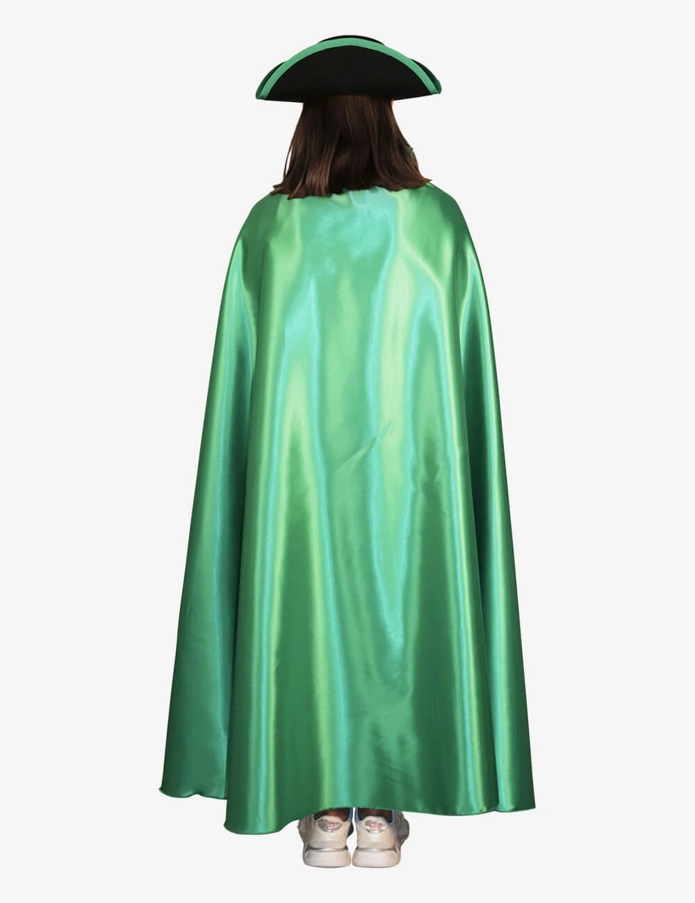 Genuine black wool felt tricorn bordered in green grosgrain.