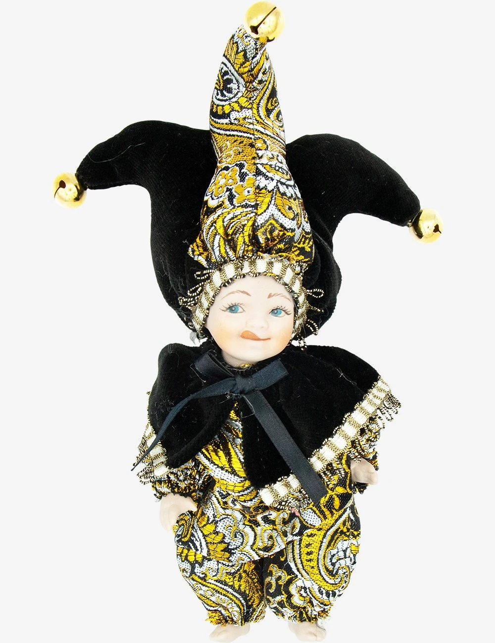 Medium Triangel 001 – Black and gold: Genuine Venetian Triangel Doll of baked porcelain, hand-painted and decorated.