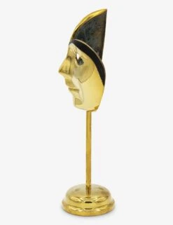 Neutra 002 in brass on Marble Base: mask in cast brass made entirely by hand using the “bracket” technique, then polished and coated by qualified Venetian master craftsmen.