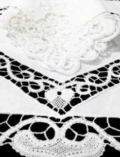 The set includes the exquisitely detailed placemat and a napkin in the same type of fabric and lace.