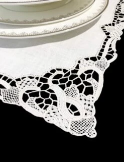 The set includes the exquisitely detailed placemat and a napkin in the same type of fabric and lace.