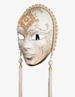 Pompeia authentic venetian mask in papier mache with metal decoration. Handcrafted according to the original Venice carnival tradition. Manufactured in Venice by the famous venetian masters. Each item is provided with certificate of authenticity.