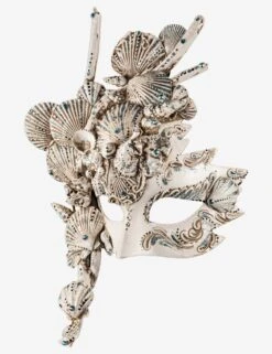 Popilia venetian mask in papier mache decorated with real shells of the Venetian beaches. Handcrafted according to the original Venice carnival tradition. Manifactured in Venice by the famous venetian masters. Each item is provided with certificate of authenticity.