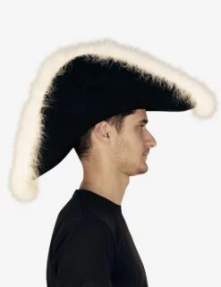 Genuine Prussian Bicorne Hat 100% made of Wool Felt decorated with white marabou