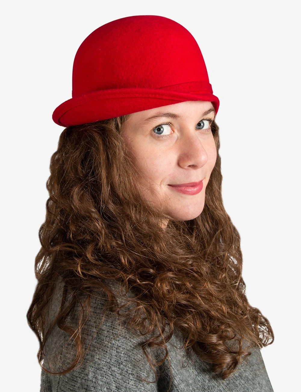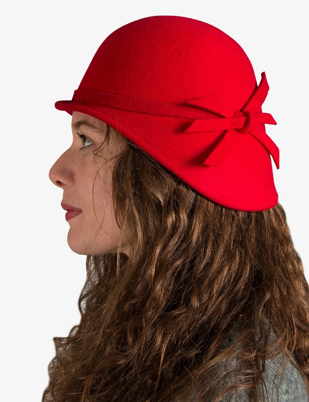 Hat Model Cloche Red 100% made of Wool Felt decorated with a thin Wool Felt ribbon