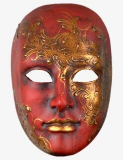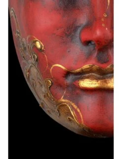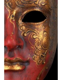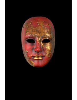 Red Face with Gold authentic venetian mask in papier mache. Handcrafted according to the original Venice carnival tradition. Manifactured in Venice by the famous venetian masters. Each item is provided with certificate of authenticity.