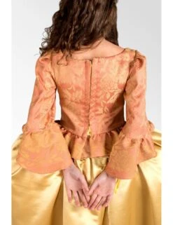 Renaissance Lady’s Dress made up of an orange Bodice with floral decoration and long ochre yellow Dress.