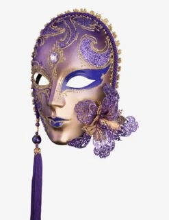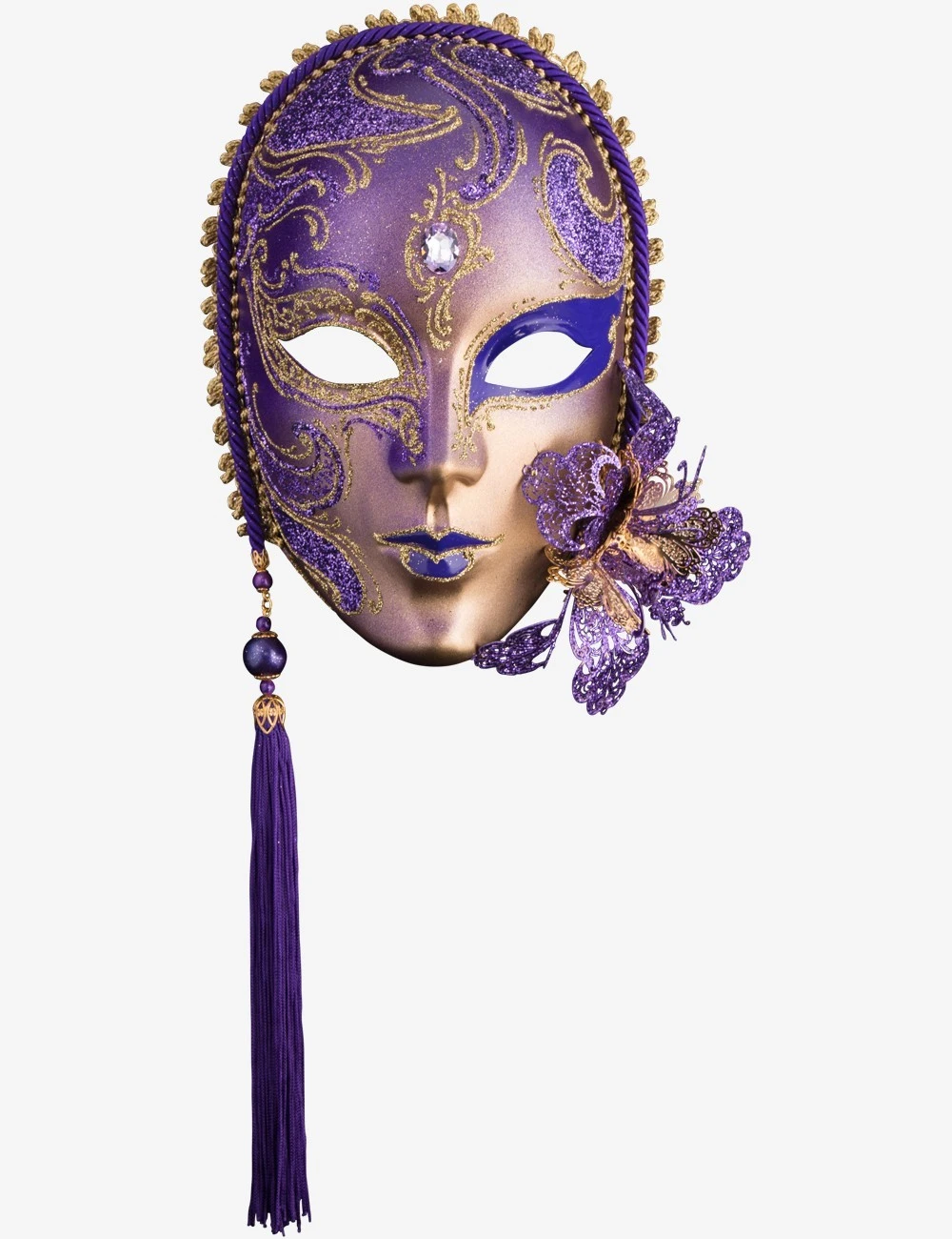 Sabina authentic venetian mask in papier mache with metal decoration. Handcrafted according to the original Venice carnival tradition. Manufactured in Venice by the famous venetian masters. Each item is provided with certificate of authenticity.
