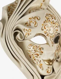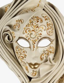 Siderea White and Gold authentic venetian mask in papier mache with leather decoration. Handcrafted according to the original Venice carnival tradition. Manufactured in Venice by the famous venetian masters. Each item is provided with certificate of authenticity.