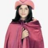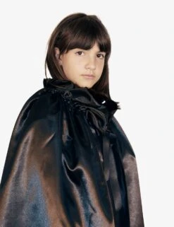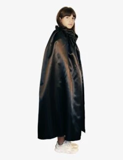Junior cape in black Varese satin with gathered collar and ribbon fastening