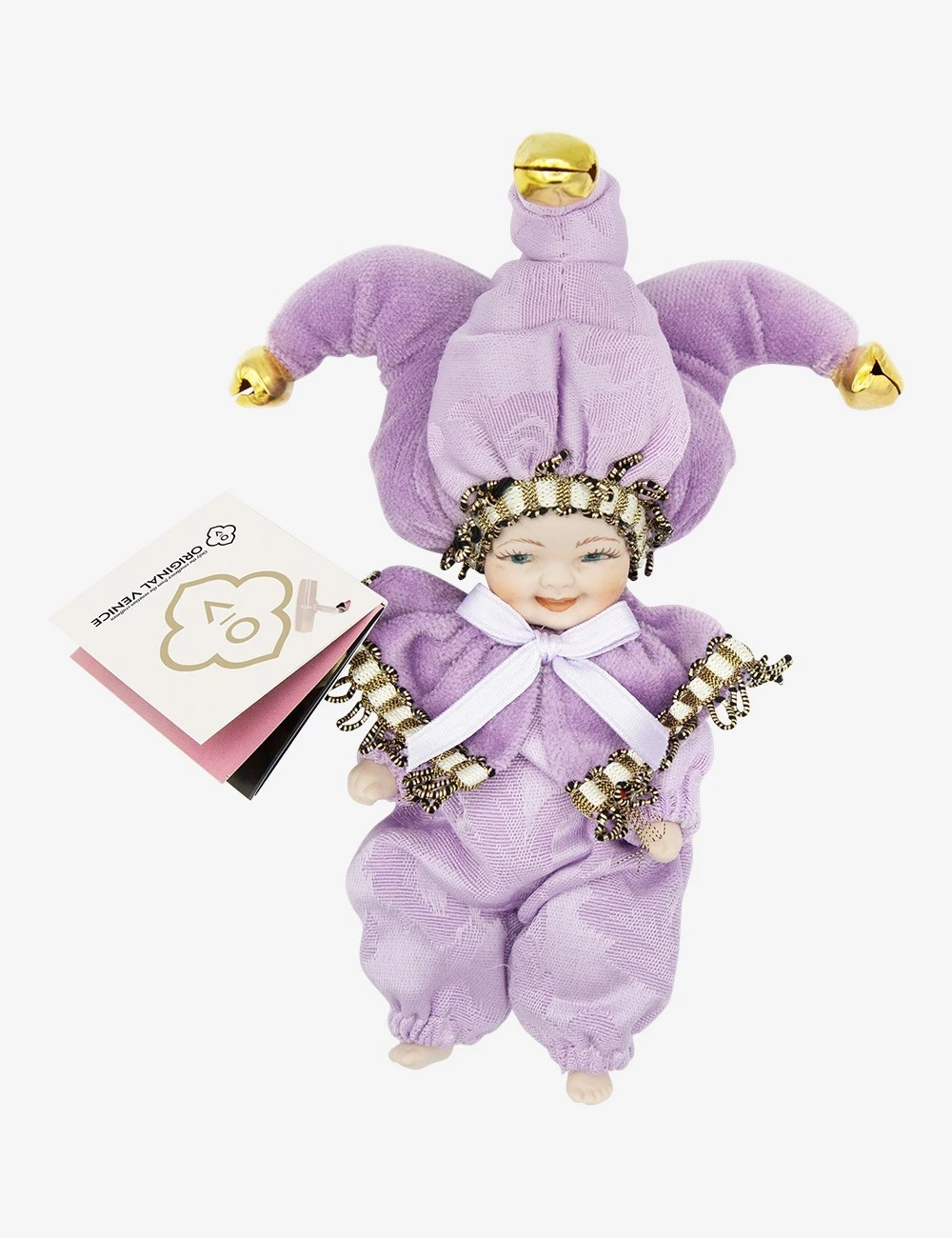 Small Triangel 002 – Lilac: Genuine Venetian Triangel Doll of baked porcelain, hand-painted and decorated.