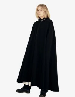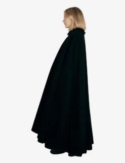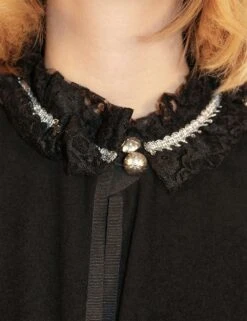 Wool cape with half wheel Characterized by the collar embellished with black lace, passementerie and buttons
