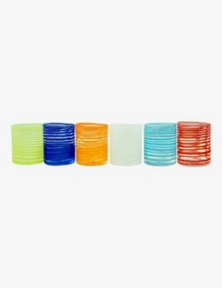 Striped Shot of digestif set of 6 – 001: Glasses made entirely by hand using the refined lampworking technique.